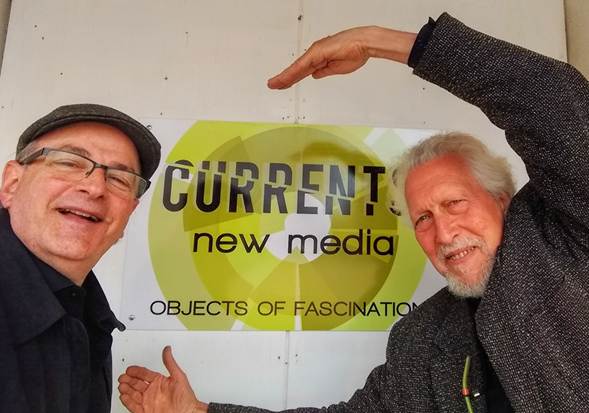 Tom Greenbaum with Richard Lowenberg at the CURRENTS New Media gallery, Sante Fe, NM (4/12/2019).